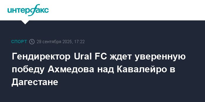 Гендиректор Ural FC ждет уверенную победу Ахмедова над Кавалейро в Дагестане