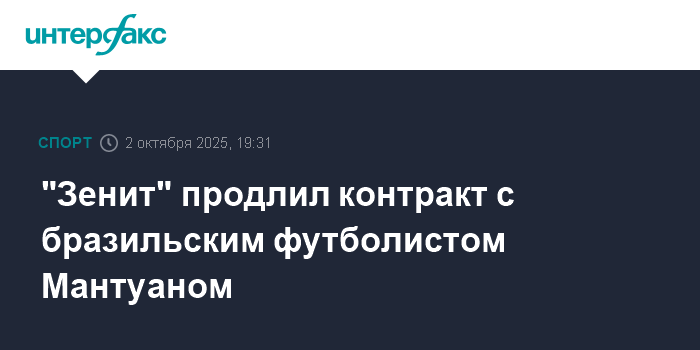 Москва. 2 октября. INTERFAX.RU - "Зенит" подписал новое соглашение с Густаво Мантуаном, сообщает пресс-служба петербургского футбольного клуба.