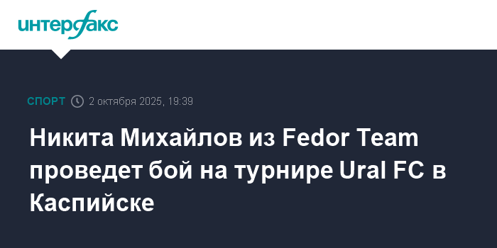 Москва. 2 октября. INTERFAX.RU - Российский боец Никита Михайлов, представляющий команду Fedor Team (Федор Емельяненко), встретится с бразильцем Риксоном Зенидимом в рамках главного события турнира лиги Ural FC.