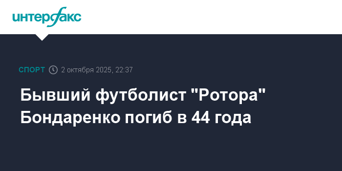 Москва. 2 октября. INTERFAX.RU - Экс-нападающий "Ротора" Максим Бондаренко скончался на 45-м году жизни, сообщает пресс-служба волгоградского клуба.