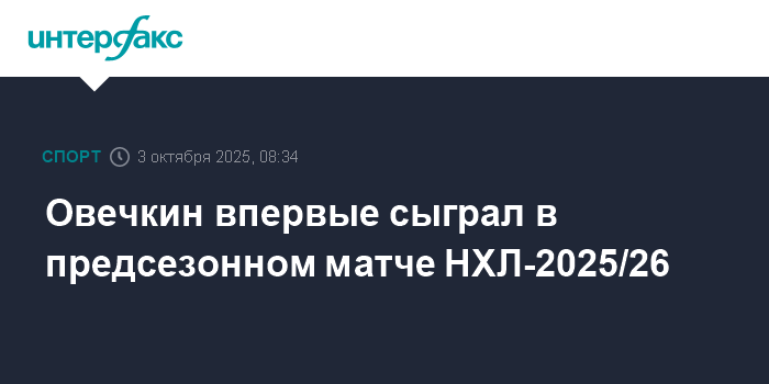 Овечкин впервые сыграл в предсезонном матче НХЛ-2025/26