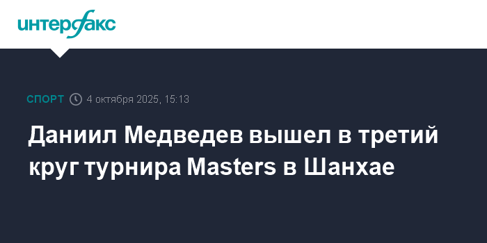 Даниил Медведев вышел в третий круг турнира Masters в Шанхае
