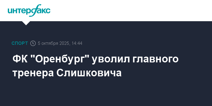 Москва. 5 октября. INTERFAX.RU - Владимир Слишкович покинул пост главного тренера "Оренбурга", сообщает пресс-служба футбольного клуба.