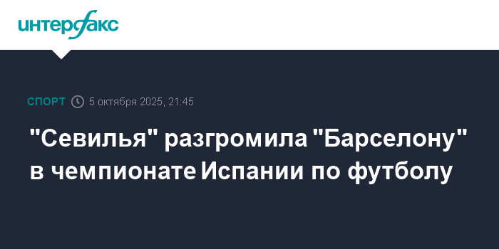 Москва. 5 октября. INTERFAX.RU - Футболисты "Севильи" со счетом 4:1 взяли верх над "Барселоной" в домашнем матче восьмого тура чемпионата Испании.
