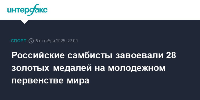 Москва. 5 октября. INTERFAX.RU - Российская команда выиграла медальный зачет на пошедшем в индонезийском городе Богор первенстве мира по самбо среди молодежи.