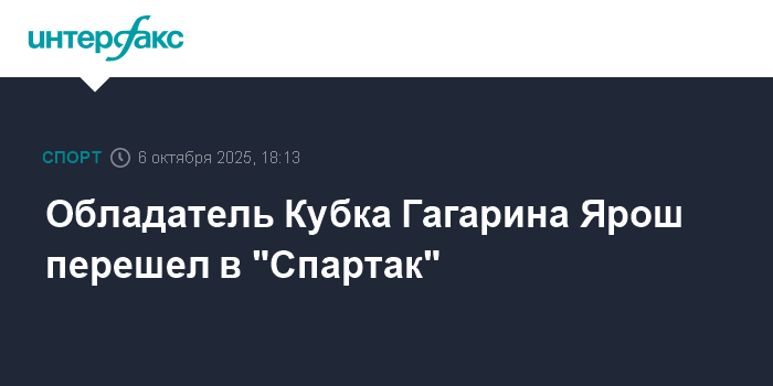 Москва. 6 октября. INTERFAX.RU - Словацкий защитник Кристиан Ярош стал игроком "Спартака", сообщает пресс-служба московского хоккейного клуба.
