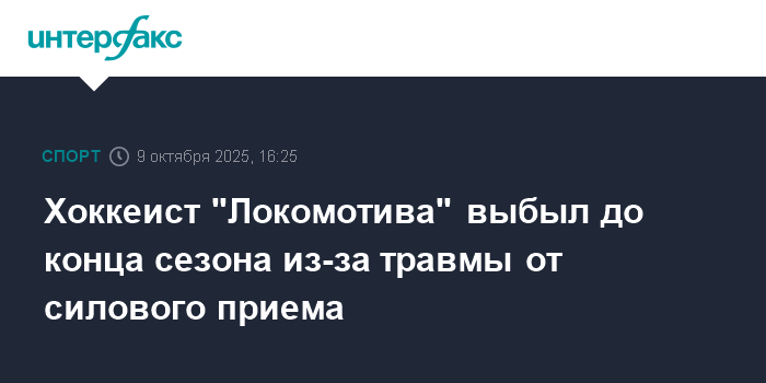 Хоккеист "Локомотива" выбыл до конца сезона из-за травмы от силового приема