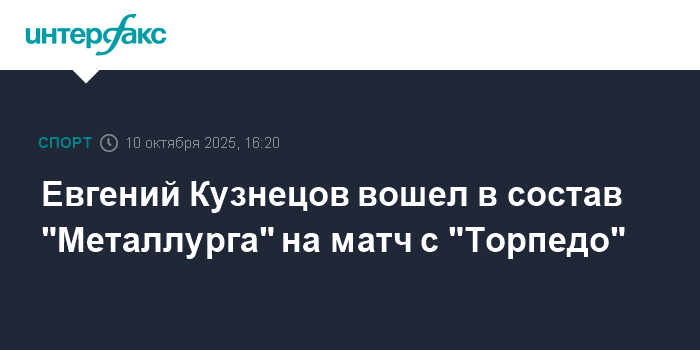 Евгений Кузнецов вошел в состав "Металлурга" на матч с "Торпедо"