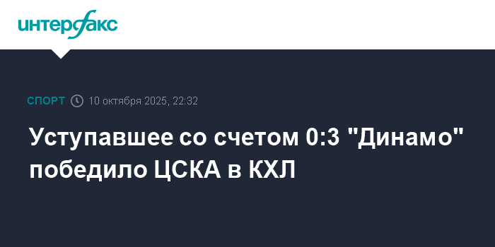 Уступавшее со счетом 0:3 "Динамо" победило ЦСКА в КХЛ