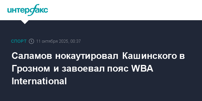 Москва. 11 октября. INTERFAX.RU - Россиянин Умар Саламов завоевал пояс WBA Internationаl бриджервейте, победив соотечественника Юрия Кашинского в главном поединке турнира в Грозном.