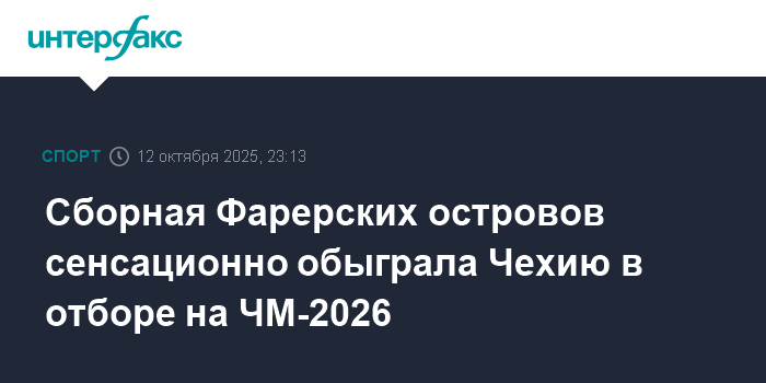 Москва. 12 октября. INTERFAX.RU - Футболисты сборной Фарерских островов со счетом 2:1 обыграли Чехию в домашнем матче отборочной кампании на чемпионат мира 2026.