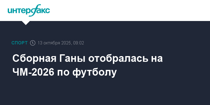 Москва. 13 октября. INTERFAX.RU - Футболисты сборной Ганы выиграли африканский отборочный турнир на чемпионат мира-2026, заняв первое место в своей группе.