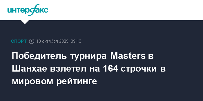 Победитель турнира Masters в Шанхае взлетел на 164 строчки в мировом рейтинге