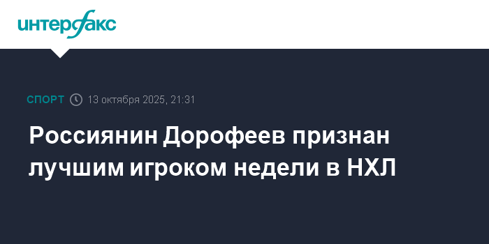 Россиянин Дорофеев признан лучшим игроком недели в НХЛ