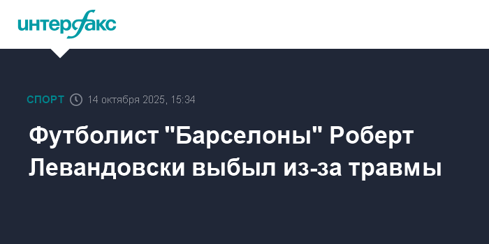 Сроки восстановления 37-летнего поляка клуб не прогнозирует. При этом Левандовски рискует пропустить матч против "Реала" в чемпионате Испании 26 октября.