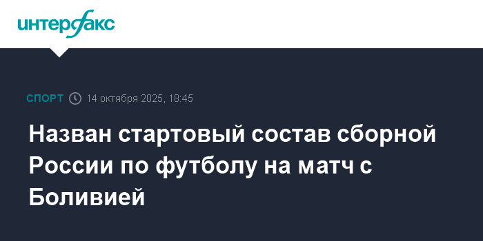 Москва. 14 октября. INTERFAX.RU - Тренерский штаб сборной России по футболу огласил стартовый состав команды на товарищескую встречу с Боливией.