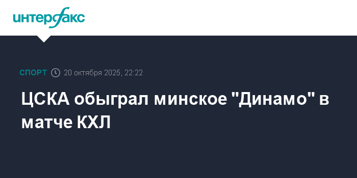 Москва. 20 октября. INTERFAX.RU - Хоккеисты московского ЦСКА со счетом 5:3 взяли верх над минским "Динамо" в домашнем матче регулярного чемпионата КХЛ.
