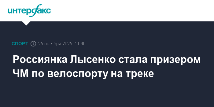 Москва. 25 октября. INTERFAX.RU - Россиянка Алина Лысенко завоевала бронзовую медаль чемпионата мира по велоспорту на треке в индивидуальном спринте.