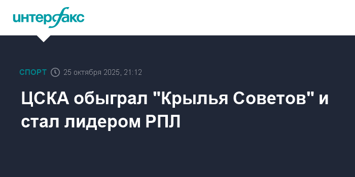 ЦСКА обыграл "Крылья Советов" и стал лидером РПЛ