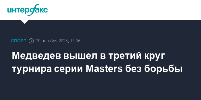 Медведев вышел в третий круг турнира серии Masters без борьбы