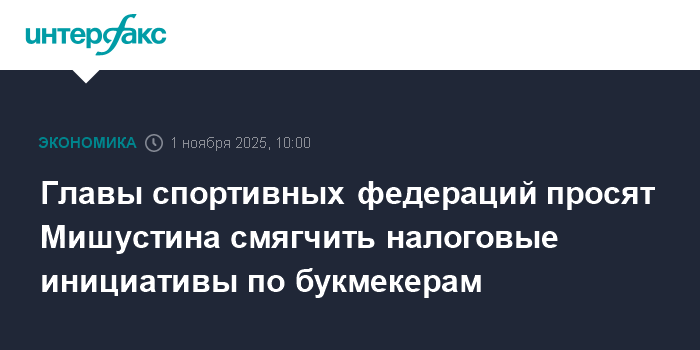 Главы спортивных федераций просят Мишустина смягчить налоговые инициативы по букмекерам