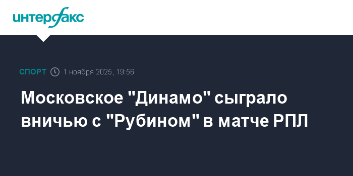 Московское "Динамо" сыграло вничью с "Рубином" в матче РПЛ