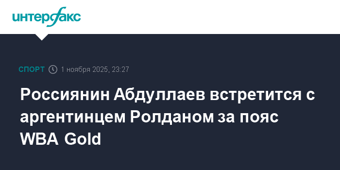 Москва. 1 ноября. INTERFAX.RU - Российский боксер Заур Абдуллаев проведет бой за пояс WBA Gold в первом полусреднем весе с аргентинцем Альберто Ролданом. Об этом сообщает пресс-служба Федерации бокса России.