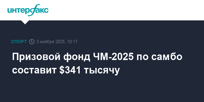 Москва. 3 ноября. INTERFAX.RU - Победители чемпионата мира по самбо 2025 года в Бишкеке получат по $4 тыс., сообщает пресс-служба Международной федерации самбо (ФИАС).