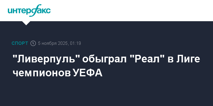 Москва. 5 ноября. INTERFAX.RU - Английский "Ливерпуль" со счетом 1:0 взял верх над испанским "Реалом" в домашнем матче четвертого тура основного этапа Лиги чемпионов УЕФА.