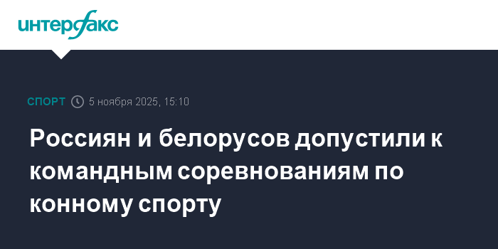 Москва. 5 ноября. INTERFAX.RU - Российские и белорусские спортсмены смогут участвовать в командных соревнованиях по конному спорту под нейтральным флагом с 1 января 2026 года, сообщила Международная федерация конного спорта (FEI).