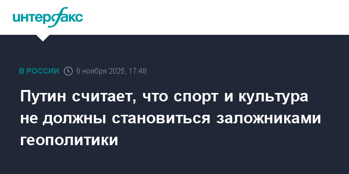 Путин считает, что спорт и культура не должны становиться заложниками геополитики