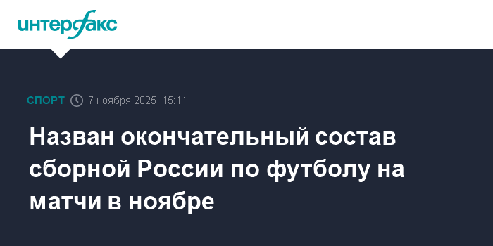Москва. 7 ноября. INTERFAX.RU - Тренерский штаб сборной России по футболу определился с окончательным составом игроков, вызванных на ноябрьские матчи.