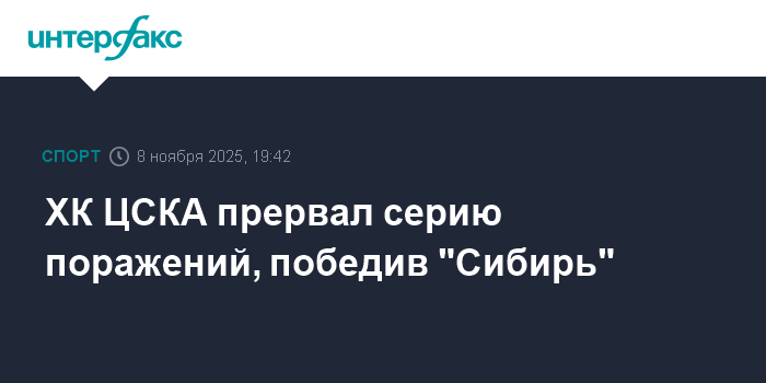 ХК ЦСКА прервал серию поражений, победив "Сибирь"