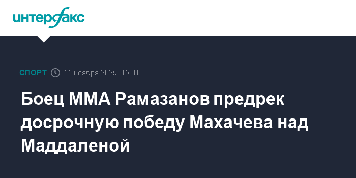 Москва. 11 ноября. INTERFAX.RU - Российский боец ММА Шамиль Рамазанов считает, что соотечественник Ислам Махачев по навыкам значительно превосходит австралийца Джека Деллу Маддалену, с которым проведет титульный бой на турнире UFC 322.