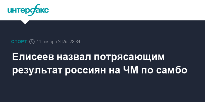 Москва. 11 ноября. INTERFAX.RU - Президент Всероссийской федерации самбо Сергей Елисеев выразил восторг выступлению российских самбистов на чемпионате мира в Бишкеке, где они завоевали 21 золотую медаль.