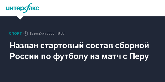 Москва. 12 ноября. INTERFAX.RU - Тренерский штаб сборной России по футболу определился с составом игроков, которые с первых минут будут находиться на поле в товарищеском матче с Перу.