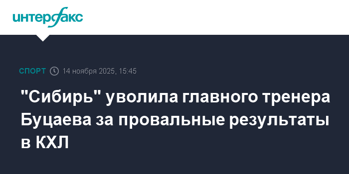 Москва. 14 ноября. INTERFAX.RU - Главный тренер "Сибири" Вячеслав Буцаев отправлен в отставку, сообщает пресс-служба новосибирского хоккейного клуба.