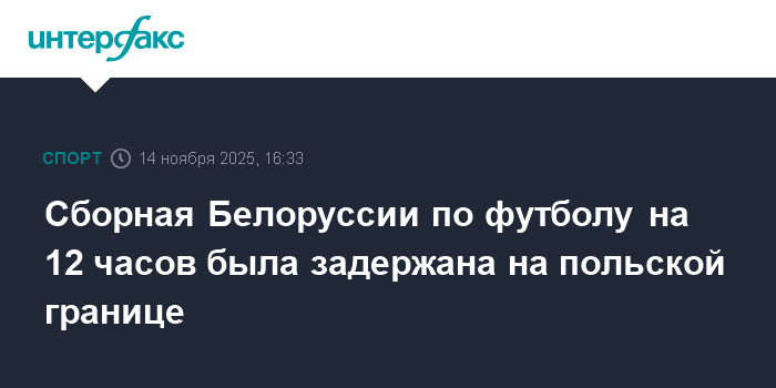 Москва. 14 ноября. INTERFAX.RU - Национальная сборная Белоруссии по футболу столкнулась с серьезными задержками при выезде в Копенгаген на квалификационный матч чемпионата мира-2026. Как сообщили в Белорусской федерации футбола, польские пограничники держали команду на границе более 12 часов, что сорвало плановый вылет в Данию.