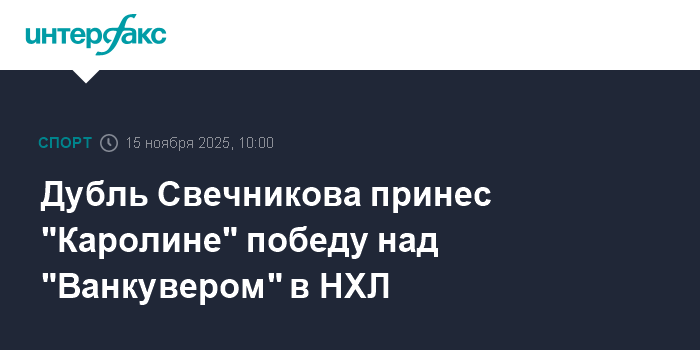 Дубль Свечникова принес "Каролине" победу над "Ванкувером" в НХЛ