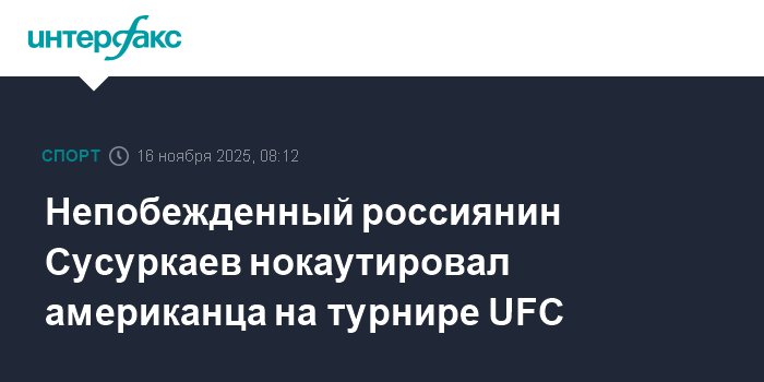 Москва. 16 ноября. INTERFAX.RU -Российский боец смешанного стиля Байсангур Сусуркаев одержал победу над представителем США Эриком МакКонико на турнире UFC 322 в Нью-Йорке.