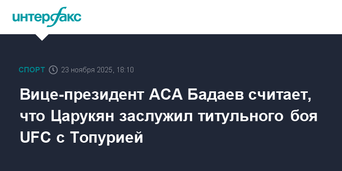 Вице-президент АСА Бадаев считает, что Царукян заслужил титульного боя UFC с Топурией