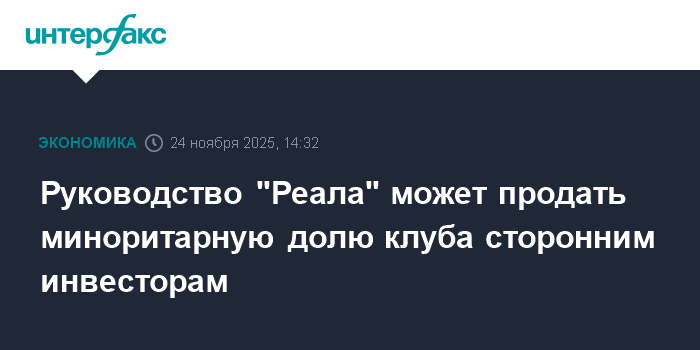 Руководство "Реала" может продать миноритарную долю клуба сторонним инвесторам
