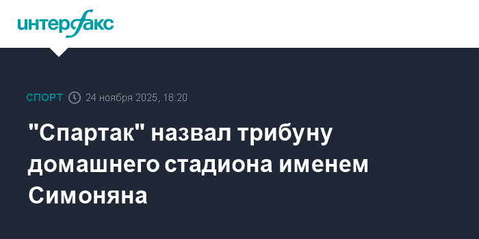 Москва. 24 ноября. INTERFAX.RU - Трибуна А стадиона "Лукойл Арена" названа именем Никиты Симоняна, сообщает пресс-служба московского футбольного клуба "Спартак".