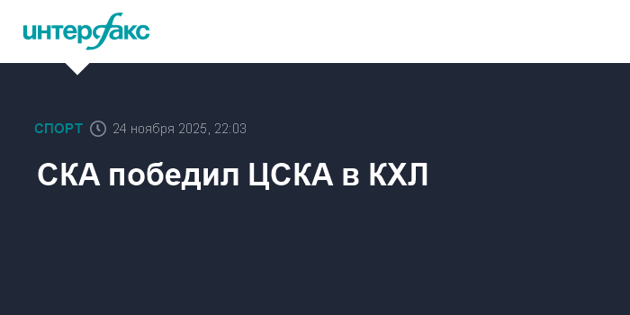 Москва. 24 ноября. INTERFAX.RU - Хоккеисты петербургского СКА со счетом 4:1 победили московский ЦСКА в матче регулярного чемпионата КХЛ.