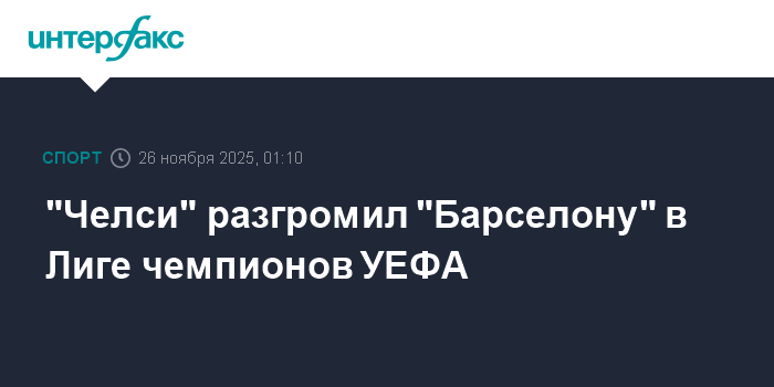 Москва. 26 ноября. INTERFAX.RU - Футболисты английского "Челси" со счетом 3:0 победили испанскую "Барселону" в домашнем матче пятого тура основного этапа Лиги чемпионов УЕФА.