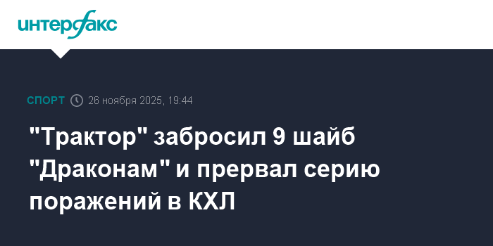 "Трактор" забросил 9 шайб "Драконам" и прервал серию поражений в КХЛ