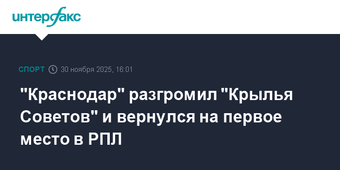 "Краснодар" разгромил "Крылья Советов" и вернулся на первое место в РПЛ