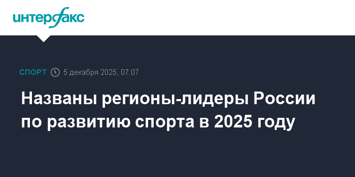Названы регионы-лидеры России по развитию спорта в 2025 году