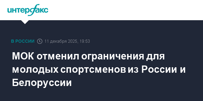 Москва. 11 декабря. INTERFAX.RU - Исполком МОК принял решение о снятии всех ограничений на участие молодых спортсменов из России и Белоруссии в международных соревнованиях по олимпийским видам спорта, включая командные дисциплины, сообщил глава Минспорта РФ и Олимпийского комитета России Михаил Дегтярев.