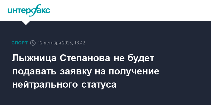 Москва. 12 декабря. INTERFAX.RU - Олимпийская чемпионка по лыжным гонкам Вероника Степанова заявила, что не намерена подавать заявку в Международную федерацию лыжного спорта и сноуборда (FIS) на получение нейтрального статуса.